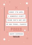 Classic Pisces Funny Zodiac Birthday Card