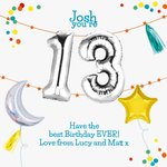 "Josh you're 13. Have the best birthday EVER! Love from Lucy and Matt x".
