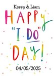 "Happy I do day. Kerry & Liam. 04/05/2025". Text is editable