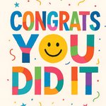 Featuring large, colourful block letters with a yellow smiley face in place of the letter 'O', and surrounded by confetti shapes on a cream coloured background.