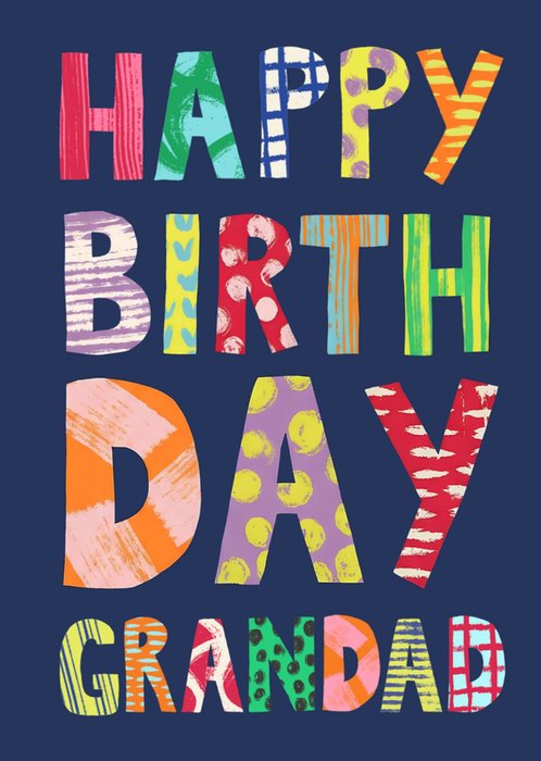 Colourful Happy Birthday Grandad Typography Card