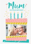Colourful Illustration Of A Cake Mum's Photo Upload Birthday Card