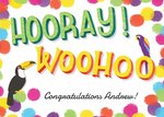 Colourful Polka Dots And Tropical Birds Personalised Congratulations Card