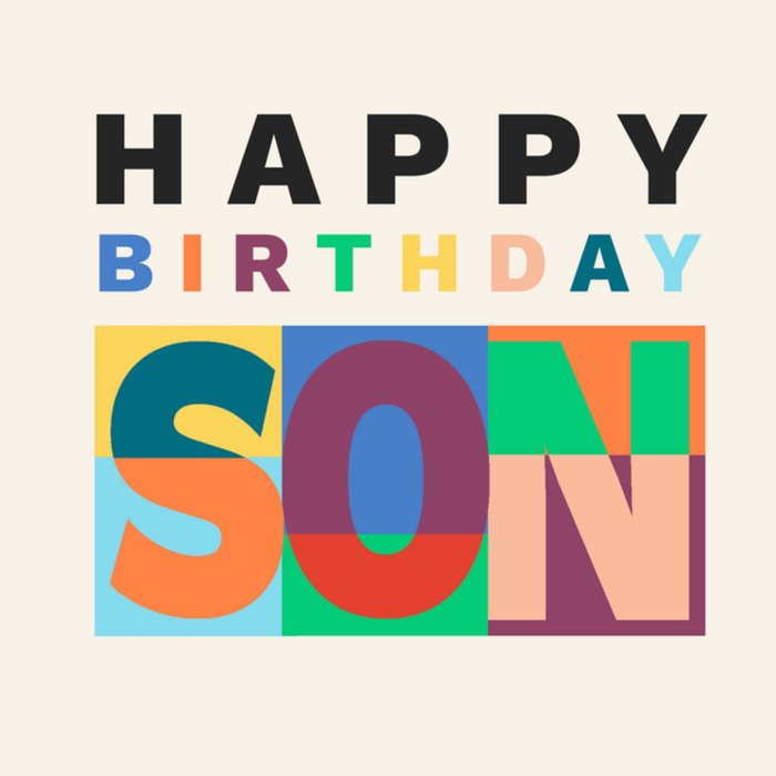 Featuring bold block lettering with bright geometric colour panels on a cream background.
