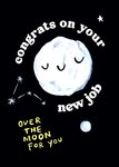 A whimsical and celestial-themed congratulations card featuring a happy moon and constellation details. The perfect way to celebrate someone's new job and let them know you're "over the moon" for their achievement!