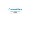Front of card: A red Connect 4 piece is central in the design with text above and below it in the Connect 4 colours. The 4 imprinted on the piece is used as the 'for' in the text.