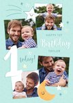 Features Multi Photo Uploads with Cute illustrations of a Moon and Star with a large typograhic Text.