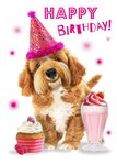 Cute Dog With Cupcake And Milkshake Birthday Card