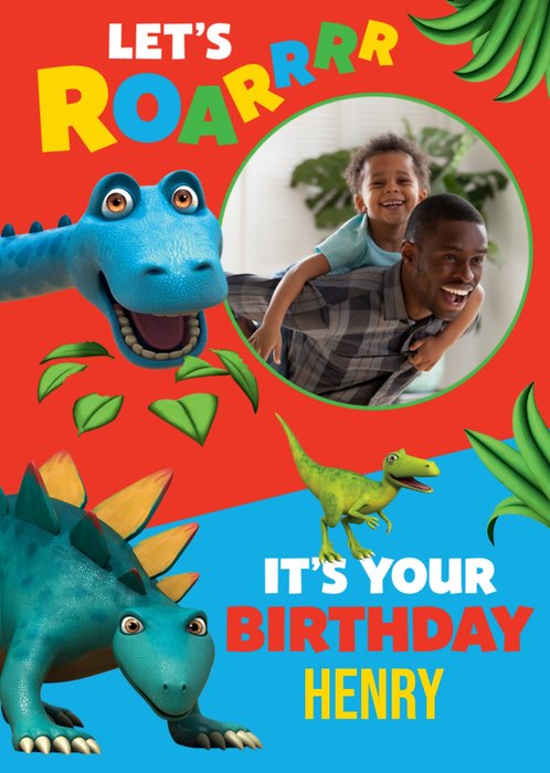 Cute Illustrated Dinosaur Photo Upload Son Birthday Card