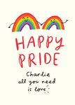Text reads: "Happy Pride Charlie All You Need Is Love". Name can be customised.