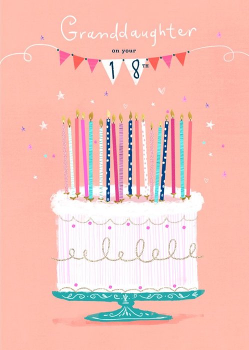 Cute illustration Cake With Candles Granddaughter On Your 18th Birthday Card