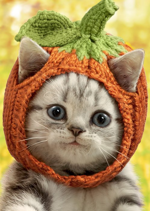 Cute Tabby Kitten Pumpkin Hat Halloween Card