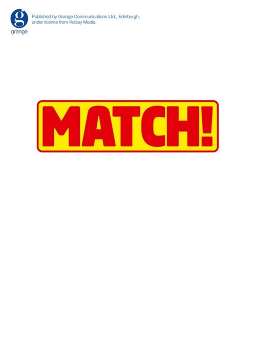 Danilo Match! The design is a spoof magazine cover. There is a bright, graphic cartoon illustration of a young boy in a red and white football kit, kicking a ball. There is a dark blue panel at the top of the card and a red one at the bottom. The background has a blue striped pattern on it.