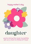 Text reads: "Happy Mother's Day daughter you're doing the most extraordinary job as a mum to Molly & Freya!".