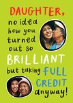 "Daughter, no idea how you turned out so brilliant but taking full credit anyway!".