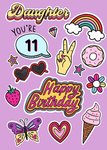 Daughter Stickers Retro Doodle Birthday Card