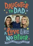 A heartfelt and colourful Father's Day card with bold, multicoloured lettering and one central photo frame. A lovely way for a daughter to show her love and appreciation for her dad with a warm, emotional message.