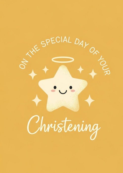 A central illustration of a smiling star surrounded by a block and script style message, on a warm yellow background.