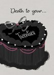 Featuring an illustration of a gothic-style black Birthday cake.