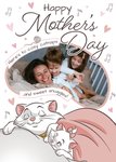 A sweet and cosy Disney Aristocats Mother’s Day card featuring Duchess and Marie cuddling together in a heart warming illustration. Paired with photo frame, this card celebrates the warmth of motherhood. The soft pink and white background with musical notes and heart details adds a charming touch—perfect for a cat-loving Mum.