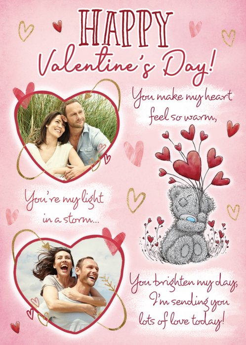 Featuring an illustration of Stitch and Angel sitting together beneath a heart shaped photo frame, with planets, stars and little hearts, plus one photo area on a light blue background.