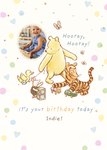 "Hooray, hooray! It's your birthday today, Indie!" The name "Indie" is editable.