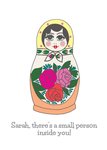 Illustration of a Doll. Text reads: "Sarah, there’s a small person inside you!" text can be personalised!