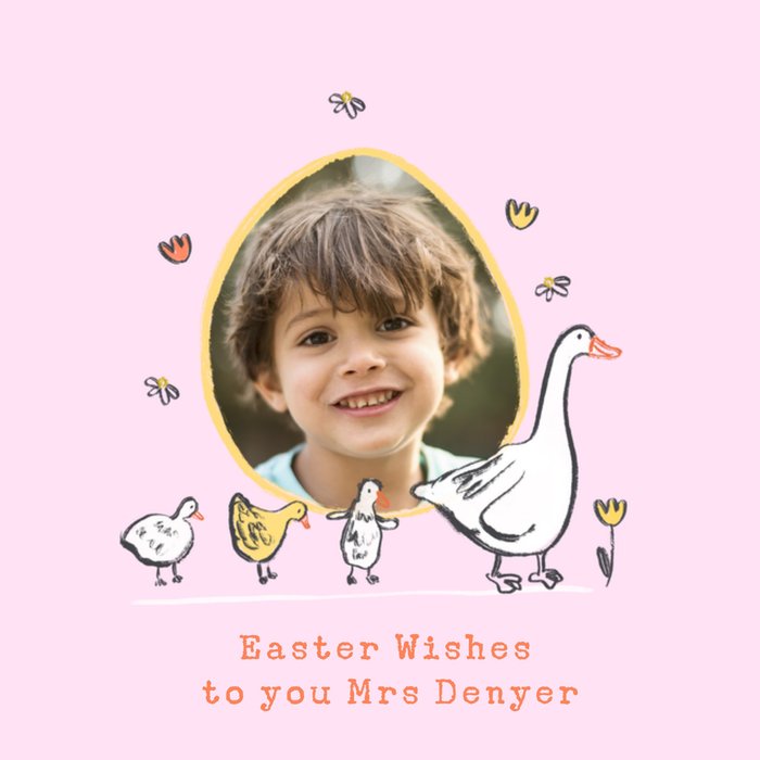 Easter Wishes To You Illustrated Ducks Photo Upload Card