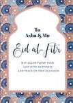"To Asha & Mo, Eid al-Fitr. May Allah flood your life with happiness and peace on this occasion."