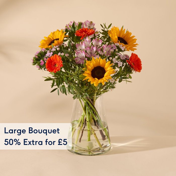 This ‘Eleanor Bowmer’ greeting card features a brightly coloured, artistic design of a woman with long, flowing, wavy pink hair looking up. Amongst her hair are illustrations of natural elements such as moons, stars, foliage and cacti.