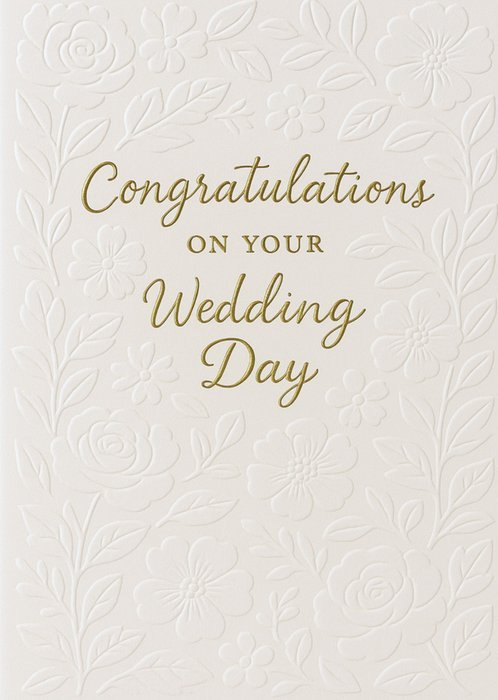 Featuring gold foil text with embossed flowers and leaves on a cream coloured background.
