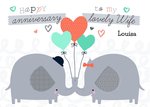Elephants With Balloons Personalised Happy Anniversary Card For Wife