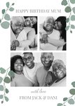 A tender and loving Birthday Photo Upload card featuring three photo upload areas with eucalyptus foliage overlapping the frames.