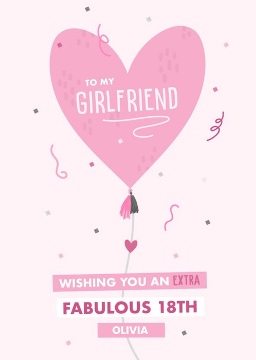 Heart Balloon Extra Fabulous Girlfriend 18th Birthday card