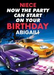 Text reads "Niece now the party can start on your birthday Abigail!".