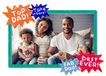 Text reads: "Top dad! Take it easy! Fab dad! Best ever".
