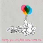 Wishing you a fun filled happy, happy day. Winnie the Pooh, Piglet and Tigger with balloons.