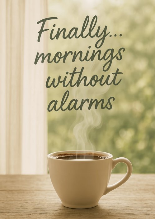 Finally Mornings Without Alarms Coffee Cup Retirement Card