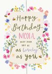 "Happy Birthday Nicola may your day be as lovely as you."