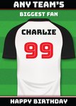 "Any team's biggest fan Charlie 99 Happy Birthday". 'Any team's' must be personalised, 'Charlie 99' can be personalised!