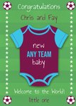 Text reads: "Congratulations Chris and Fay new any team baby welcome to the world! Little one". 'Chris and Fay', 'any team' and 'little one' can be personalised!