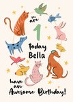 "You are 1 today Bella have an awesome birthday". '1' and 'Bella' can be personalised!