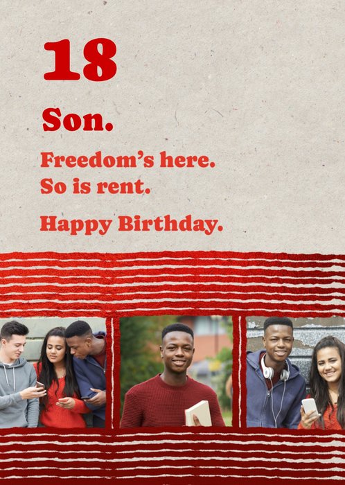 "18 Son. Freedom's here. So is rent. Happy Birthday"