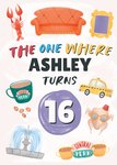Featuring iconic illustrations from the American television sitcom Friends including a lobster, Monika's Thanksgiving turkey, the opening scene fountain, the gold peephole frame, a yellow NYC taxi and the Central Perk orange sofa.