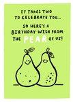 Text Reads: "It takes two to celebrate you... So here's a Birthday wish from the pear of us!".