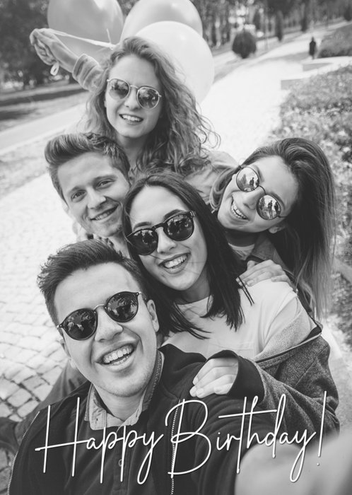 Featuring handwritten typography at the bottom part of the card with one photo upload area covering the whole font page.