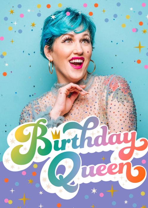 Fun Colourful Birthday Queen Photo Upload Card