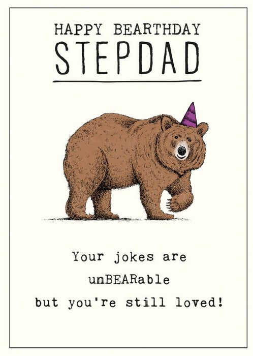 Fun Illustration Of A Bear Happy Birthday Step Dad Unbearable Jokes Card