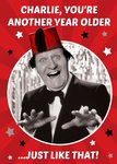 Funny Danilo Tommy Cooper Birthday Card Another year older, Just like that!