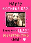 Features a rectangular photo upload area in the centre of the card, with a white and black frame against a pink coloured background. Above and below the photo frame is text in a hand written style font in a mix of black, white and lime green. In the bottom right corner is a white paw print.